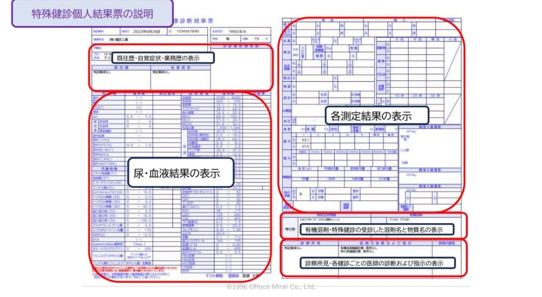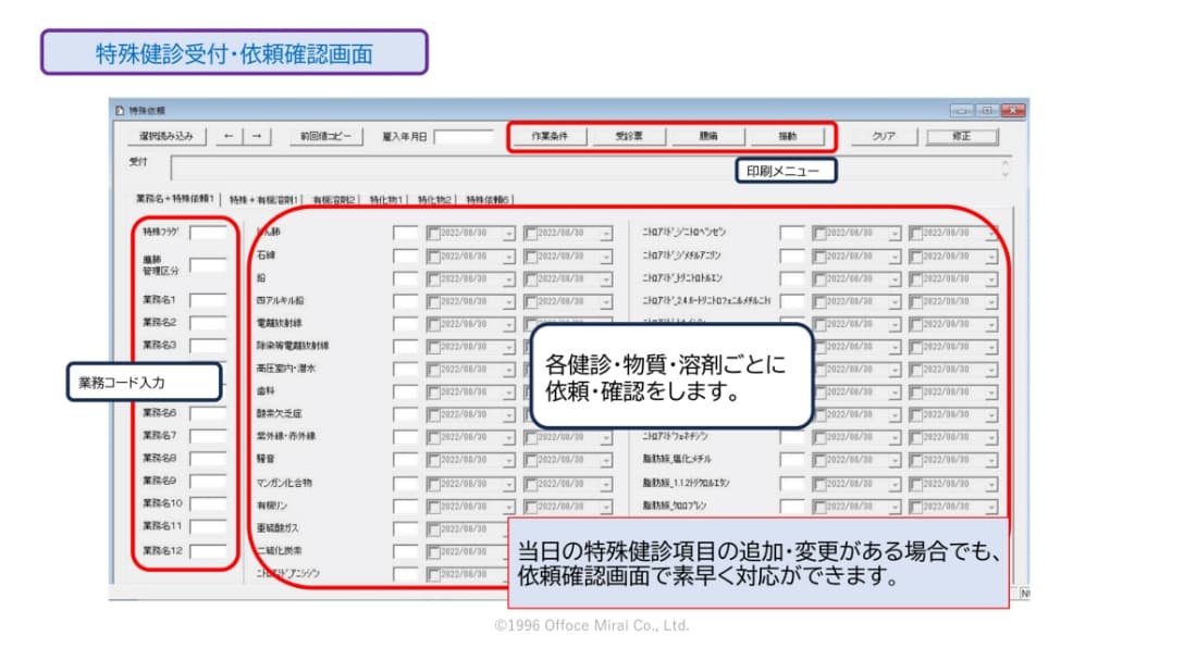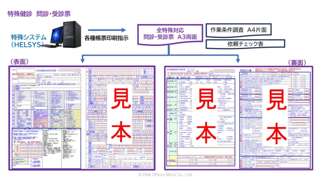 複数の特殊健康診断項目を、1枚の問診受診票で全ての項目に対応。